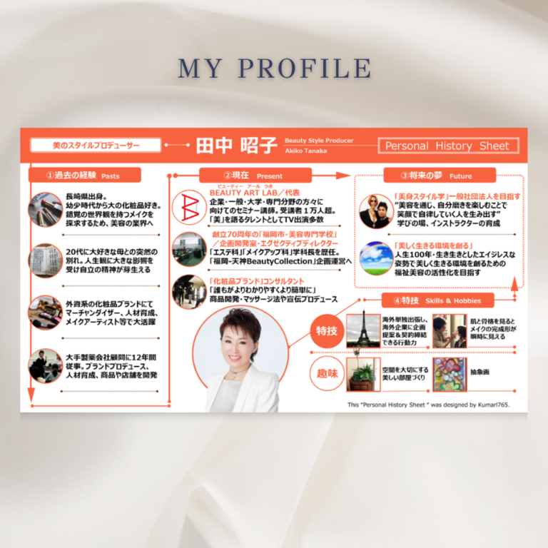 田中昭子です!公式サイトをリリース致しました。コラムは、美のスタイルプロデューサーとして活動をしている私が日々感じ、考えること、進化する美容について発信します!注目の公式サイト!本来の”ジブン”に気づき、トータルでセルフプロデュースできる「美身スタイル学」のサービスリリースを予定しております。ビューティーの風はどこから吹いてくるのだろう?ジブンを変えたいジブンは変わりたいジブンを変える手をとめてみた心のスイッチを押すタイミング!もっとジブンを好きでいたい そんな方に届けたいと考えています。 Post Views: 25,142